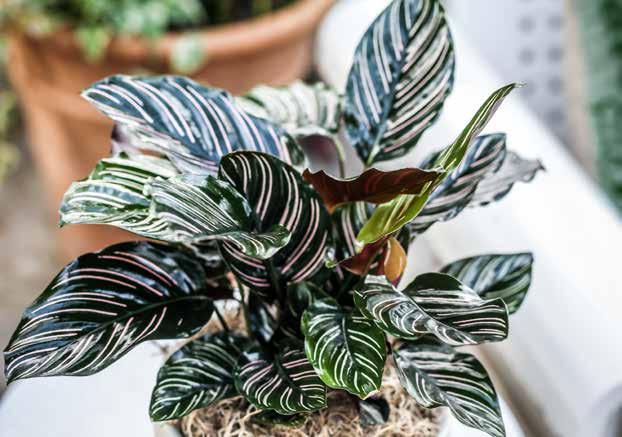 The Calathea Ornata has a ton of varieties and is a very artistic plant. This one is a little finicky and temperamental, so it can take a little bit of a green thumb to care for them. Faucet water can be hard on these plants, so they prefer distilled water. If brown tips appear, this means it is being over-watered or the water is hard. They like medium to bright indirect light. They can grow to 1 ½ feet to 2 feet maximum.