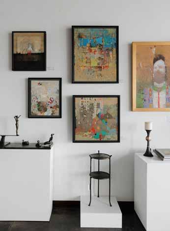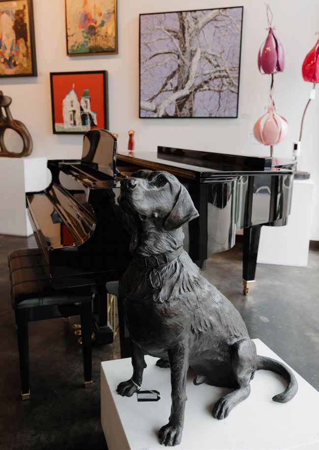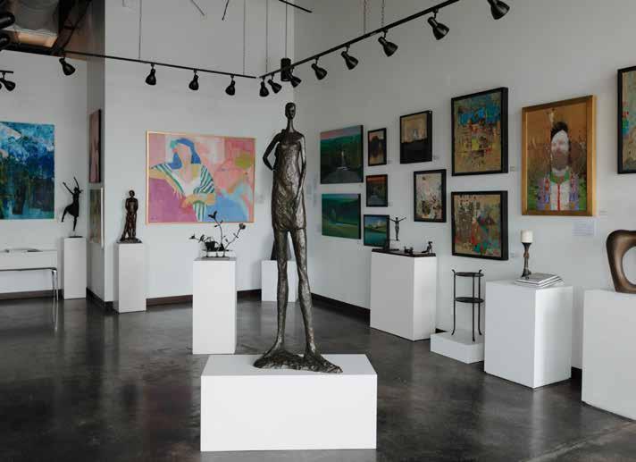 refined figurative bronze work that feels as vital today as it did decades ago. Painter Dan Vanderhoof, a protégé of Mark English, brings bold color and confidence to his canvases. Jan Gaumnitz, a cornerstone of the Lawrence arts community since the 1960s, continues to explore new materials and ideas at 90, moving fluidly between painting, sculpture, photography, and printmaking.