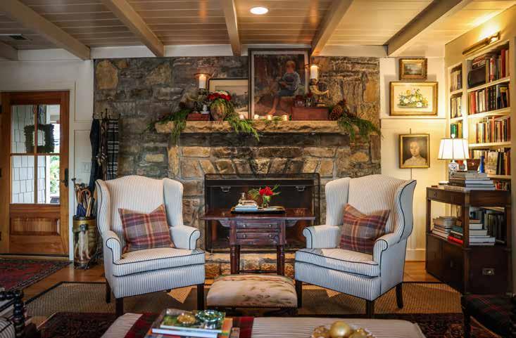 Even the tablecloth carries a story. The soft square of decorator fabric belongs to their friend Judy, who often reminds them not to take entertaining too seriously. “We were getting caught up in the details, polishing silver, worrying about perfection,” Mary Carol recalls fondly. “And Judy said, ‘You’re not entertaining the Queen!’ She’s right. It’s not about perfection. It’s about people.”