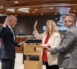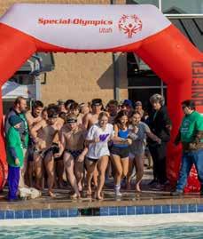 1–2: Locals take part in the polar plunge, put on in Daybreak for charity. 3: Adult students of the School of Rock perform at their Winter Showcase concert. 4: Guitarist Carson Summers and vocalist Layla Bradford-Borman perform at the School of Rock Winter Showcase. 5: Zack Walter of Redline Handyman at the SLC Firefighter "Pints For A Cure" fundraiser. 6: Governor Cox administers the Oath of Office ceremony for South Jordan Mayor Dawn R. Ramsey. 7: A model walks at the Walking For Gold charity fashion show.