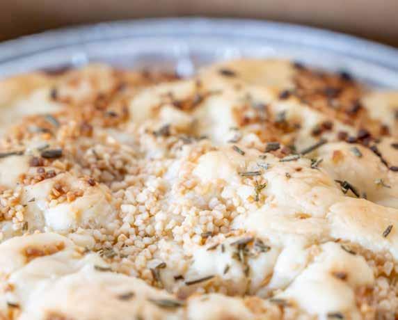 dough, she adapted. “One of the things you can do with over proofed sourdough is make focaccia. So, I just poured it into the pan and thought, we’ll see what happens.” With rosemary from a struggling plant, garlic, and a sprinkle of sea salt, her now-signature bread was born.