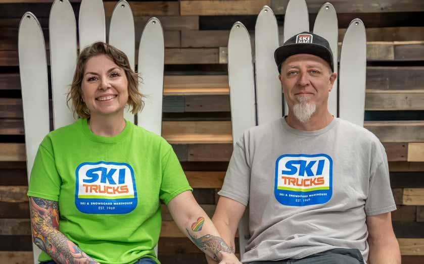 Ski Trucks’ community focus extends beyond the in-store experience. The business still holds fast to its founder’s “one man’s trash, another man’s treasure” mindset. Monte and Zoe partner with local recycling companies to grab gear on its way to the dump. “If it’s on the way to the landfill, we’ll process it,” Monte says. Sometimes, they even repurpose skis into custom furniture.
