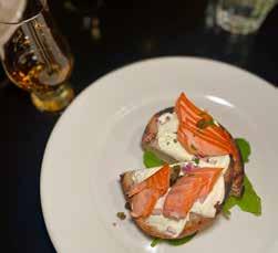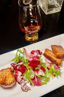 1: A peek at the Woodinville Whiskey Dinner menu. 2: Woodinville Sherry Cask Bourbon pairing with fresh scallop and pork belly first course.