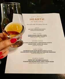3: Hearth sign lit up for the Woodinville Whiskey Dinner event. 4: Patrons enjoying their Woodinville Whiskey tastings inside Hearth.