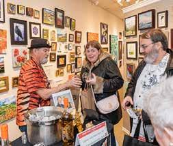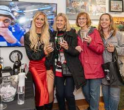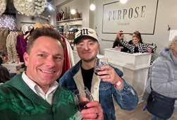 1: In the Heathman Hotel lobby, Max Rombakh and Beth Gale chat about her favorite Wine Walk venues. 2: Ben Brittingham and Riley Woods sipping Category 5 wine with the Purpose Boutique team. 3: Darlene Lovison and Max Rombakh host the Team Rombakh booth, photobooth sponsors for the Wine Walk. 4: Guests enjoy Zzaphoria Spirits and water at Parklane Gallery. 5: Wine pours available at European Wax Center. 6: Dineen Vineyards with Pac 12 Championship Game on in the background at Gunnar Nordstrom Gallery. 7: Sky River Mead was available to attendees.