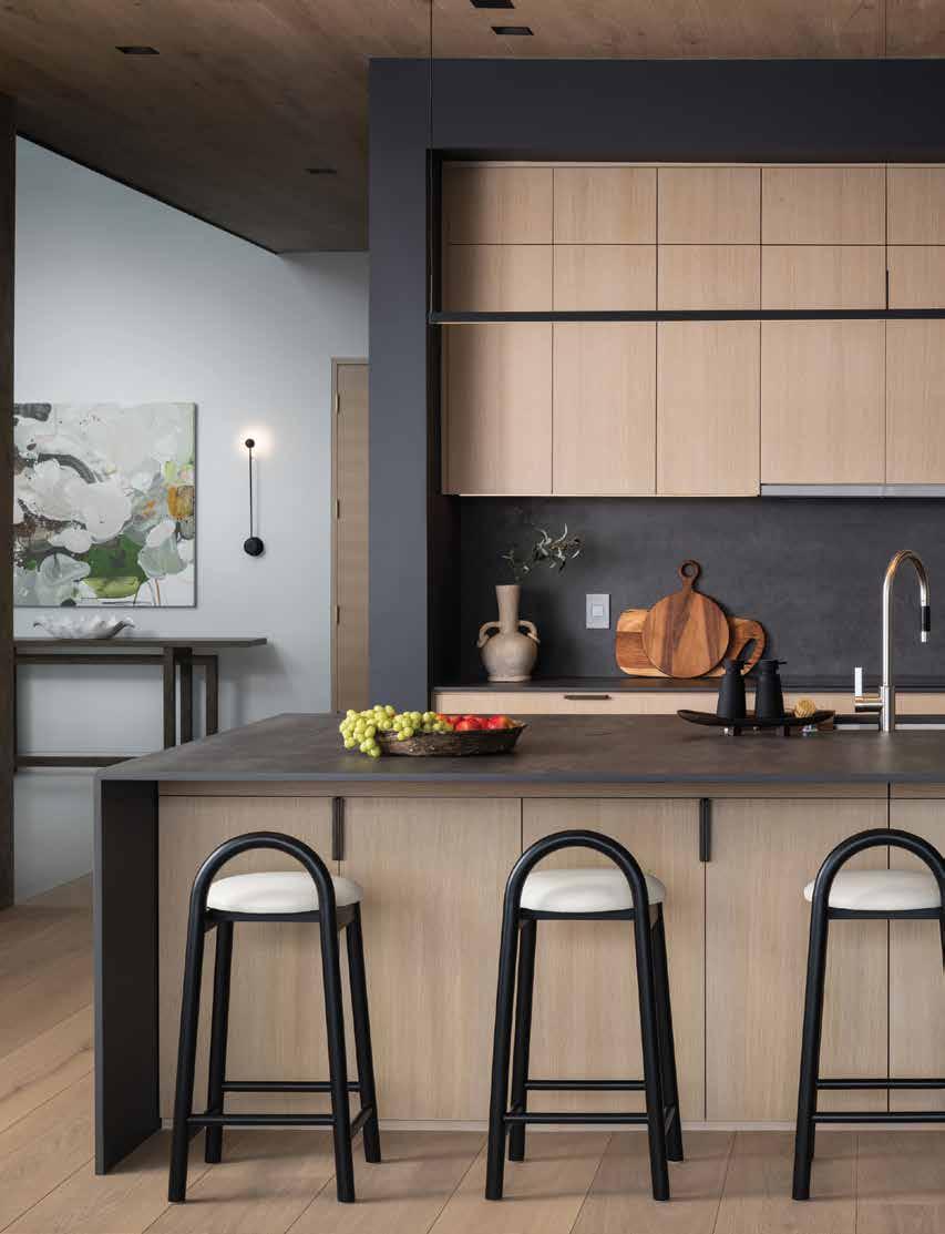 “The big open concept room really highlights the expansive outdoor views,” she says, “but making intimate spaces within that open room was really important.”