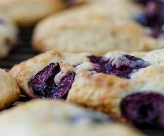 4. Using a fork or dough whisk, gently mix until a shaggy dough begins to form. When the dough is mostly combined but still slightly crumbly, add the cherries and continue mixing gently until the dough comes together.If dry pockets remain, add 1–2 tablespoons (15–30g) additional cream as needed.
