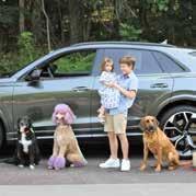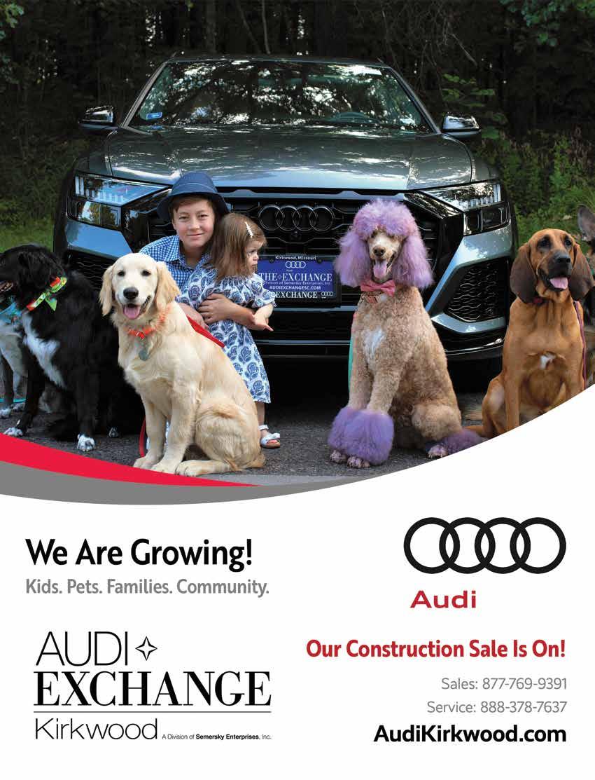 The kids and pets on this cover photoshoot were full of funny expressions so we thought it would be fun to imagine what they were thinking as they posed for pictures. We want to give a big thank you to the kids Gabe and Vivian, and the pets Josie the Poodle, Dean the Border Collie, Astro the Catahoula mix, Cayenne the Bloodhound, Puppy the Golden Retriever and to the Kennelwood dog trainers and most of all to Audi Exchange Kirkwood for agreeing to let us have some fun with an Audi RS Q8 for the photoshoot.
