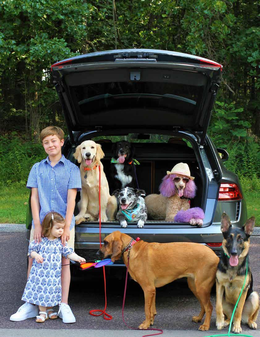 We collaborated with Audi Exchange Kirkwood, big brother Gabe and little sister Vivian, dogs and trainers from Kennelwood Pet Resorts, and Sara McCarty photographer and founder of Run Wild My Child for this cover photoshoot. Easy, right?