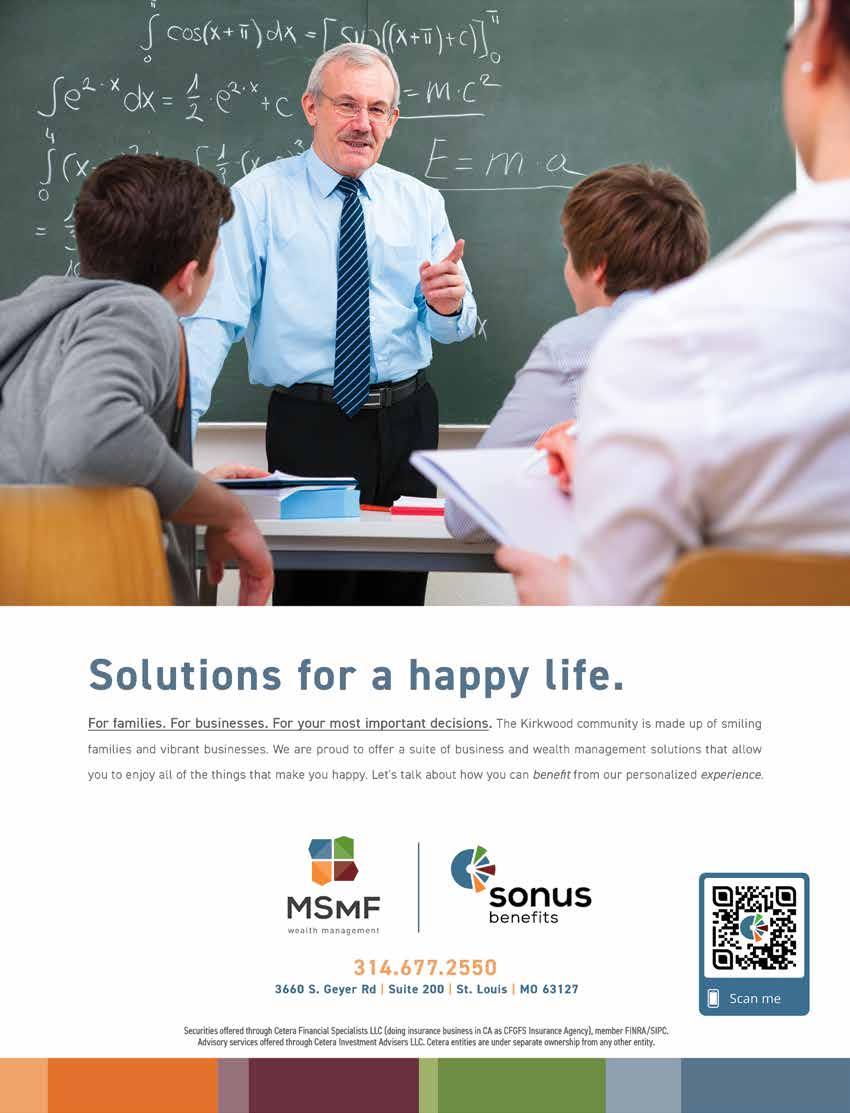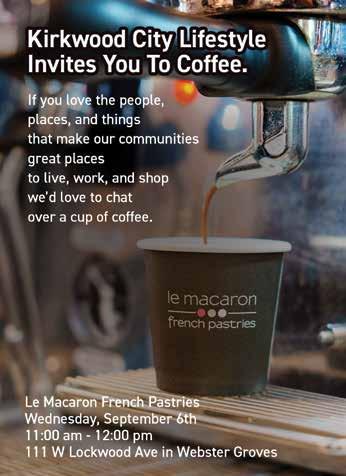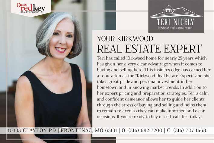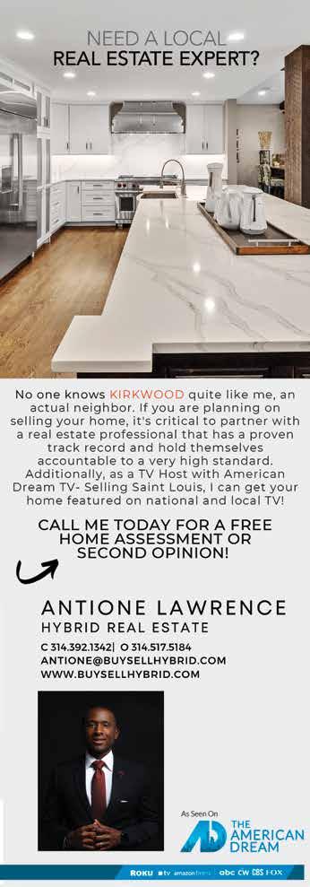 Catering: 314.243.8740 www.daliessmokehouse.com 2951 Dougherty Ferry Rd. (63122) Store: 636.529.1898 Say "I DO" with Dalie's BBQ Weddings | Showers | Rehearsal Dinners Ask about our Charcuterie Boards and Carving Stations IF YOU ARE READING THIS... SO IS YOUR BEST CLIENT. 2 OUT OF 3 of our readers regularly purchase from our ads. ADVERTISE WITH KIRKWOOD CITY LIFESTYLE ™ CITYLIFESTYLE.COM/KIRKWOOD 23 | CITYLIFESTYLE.COM/KIRKWOOD SEPTEMBER 2023