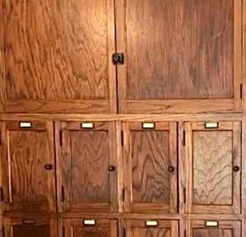 Michelle Birkla put these lockers for sale on Facebook Marketplace when she and her husband prepared to downsize their home in Kirkwood. Fun fact: Price Elementary School was built in 1825. The building now houses Churchill School, a private school for children with learning disabilities. Michelle's husband works for Churchill and was allowed to salvage things from the building that were not being used by the Churchill School. The Birklas have had these lockers in their home for years, and now they are perfectly fitted for 408 Gill.