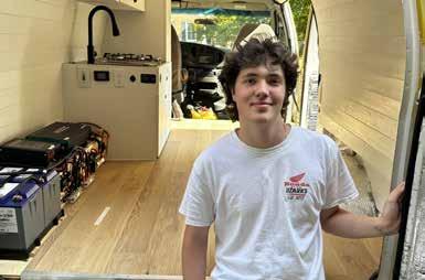 Henry found a van on Facebook Marketplace and, with the help of his mom and dad, completely gutted it and built a mobile dorm room. Henry set out for the open road in September of 2023.