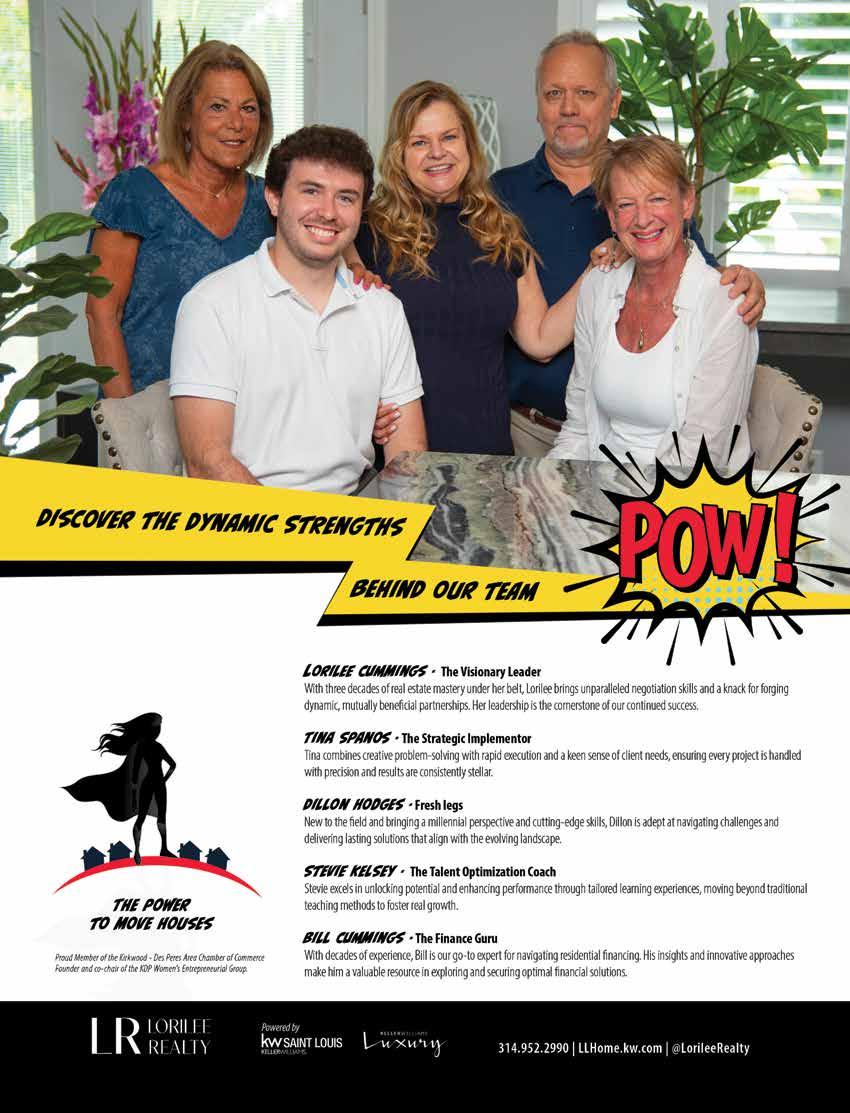 I’m excited for you to meet our partners who are building and remodeling experts and the nicest people you’ll meet in the home industry. I’m fortunate to be surrounded by amazing business owners who support our community. Get to know all our magazine partners as you explore the homes on the tour. Let them know you look forward to receiving this magazine in your mailbox each month. Their commitment to Kirkwood City Lifestyle magazine makes this home tour possible.