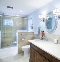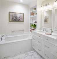 with push-button controls. Comfortheight toilets with an electrical outlet behind the toilet for a bidet, seating around the front of the bathtub, and grab bars in the shower offer safety as well as elegant style.
