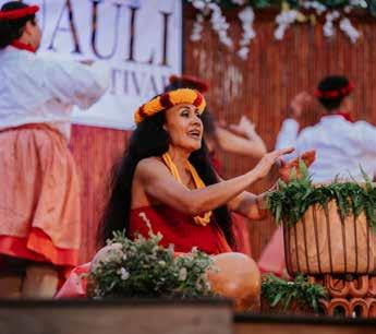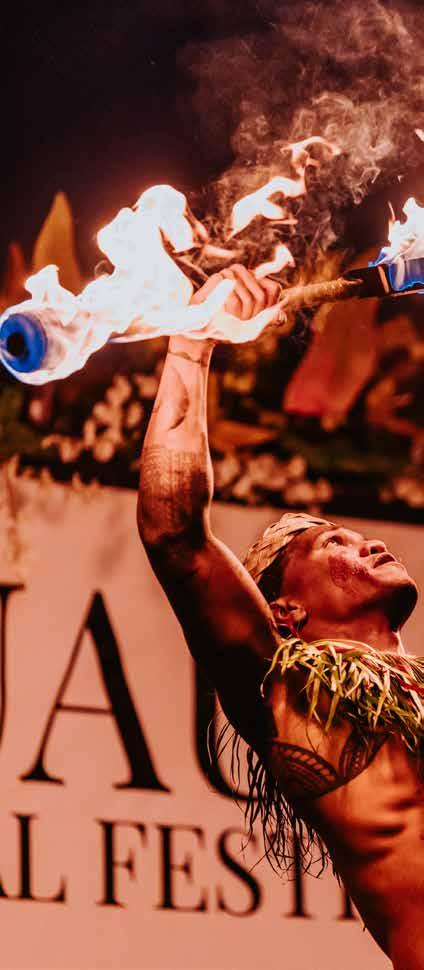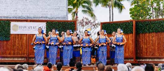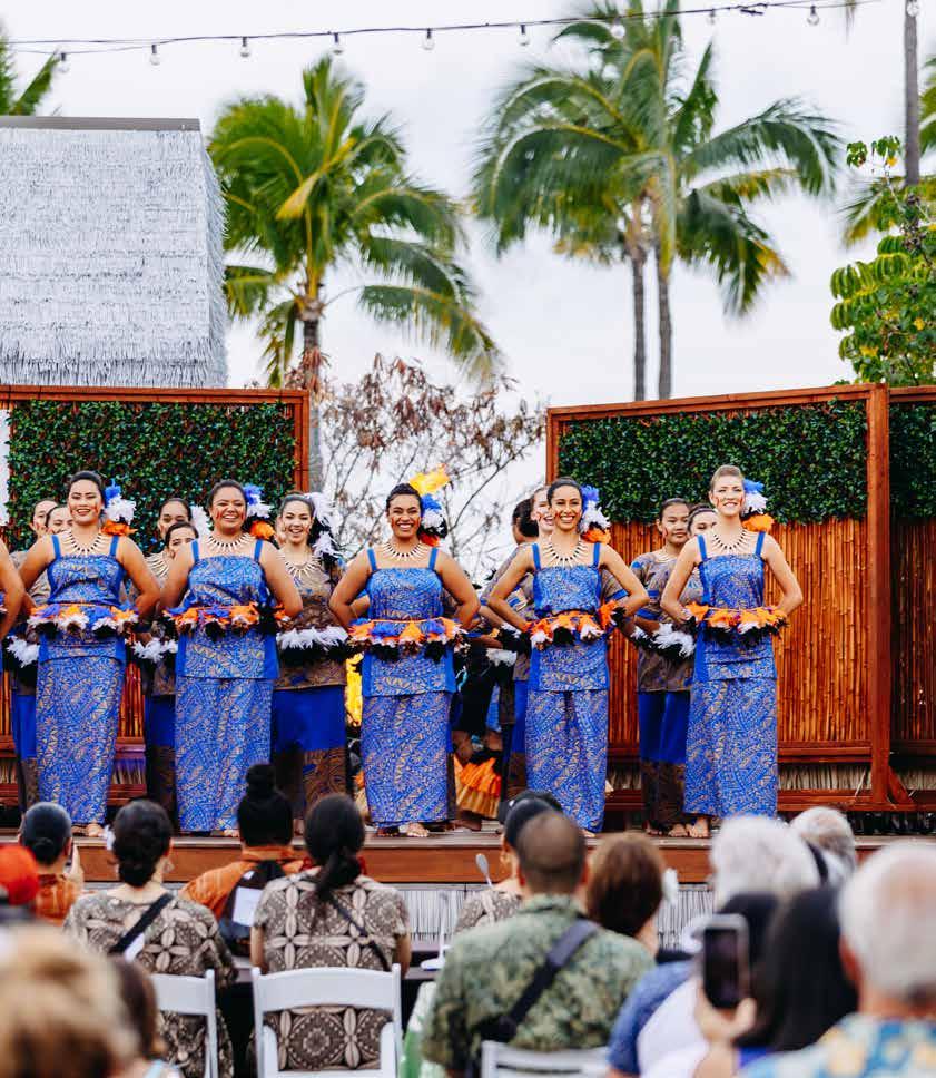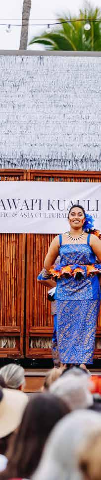 and Hula Hōʻike. The Hawaiian delegation at Kamakahonu Bay, dressed in traditional costumes of hand-stamped and dyed paʻu lead a very special ‘Aha Pūle, an opening blessing for the event. The delegation presented Hawaiian chants and hula written exclusively for the 2023 festival opening, reminding us of the purpose of the gathering: bringing people together to share our aloha and welcome those visiting from throughout the Pacific & Asia. Cultural groups representing Korea, Tonga, and Sāmoa participated in the festival this year, sharing their songs and dances. Included were Kealakehe Polynesian Club, Island Breeze Productions, and Ka Makani O Ka Moku ʻĀina Hula Studio.
