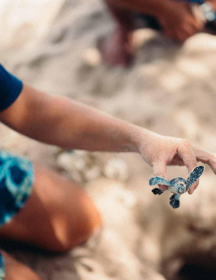 Since the Tetiaroa Society's inception, Executive Director Frank Murphy and his team have been working tirelessly to restore the atoll to pre-human conditions. “Our job is basically to protect and preserve the island,” Frank says. Funded by donations and profits from the resort, the Tetiaroa Society boasts a worldclass research facility, hosting scientists from around the world. Their efforts have included the eradication of rats on the motus, resulting in the return of all the native bird species and a surge in the turtle population. Additionally, a progressive mosquito population control project has been trialed on the atoll, with the result that the resort is mosquito-free.