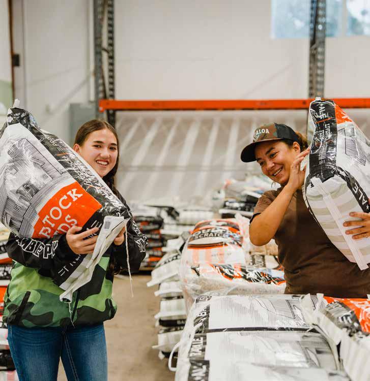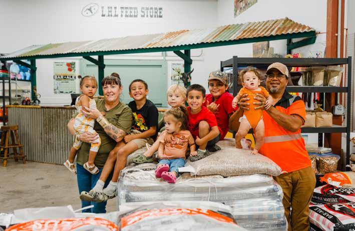 family, with their boys competing in high school rodeo. Caring for horses and livestock took time, and sourcing feed locally often meant long drives and limited options. “We saw a need in the community,” Rachel says. “Back then, we took a chance, and now we’ve opened our second store.” Today, three generations of Loandos move through the second L.H.L. Feed Store. The scent of fresh hay hangs in the air, and the space feels alive. Feed lines the walls, ropes and collars are within easy reach, and a newly built, family-made farm-style stand anchors the area where customers gather. The shelves hold medicine and feed for just about anything. Rabbits, horses, sheep, goats, chickens. Hay, shavings and straw sit stacked and ready to load. There’s feed for parakeets, parrots, wild songbirds and even turtles. If they don’t have it, they’ll bring it in.