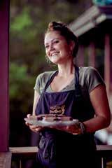 “The fluidity, rhythm and grounded movement of hula shape the way I move around the table,” she says.
