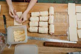 cakes, and lilikoi swirl and cream cheese-topped cinnamon buns. The savory delights are flaky croissants filled with cheese, herbs, spices and some with ham. Make-at-home pizza dough and 10-ounce bags of fresh, organic pasta round out the products found at the pop-up tent on Wednesdays.