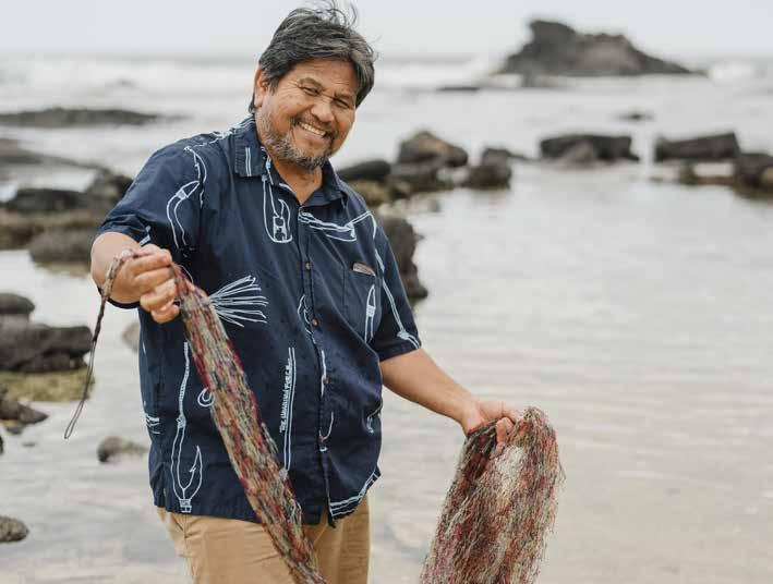 Sitting at the beach in Kailua-Kona with the wind in his face, the ocean in the distance, and the smell of saltwater in the air takes Apolonio ‘Apo’ Kalani Aquino Sr. to a place of peace. He soon takes out a synthetic fishing line and begins to tie dozens of knots to create what will eventually become a large fishnet.
