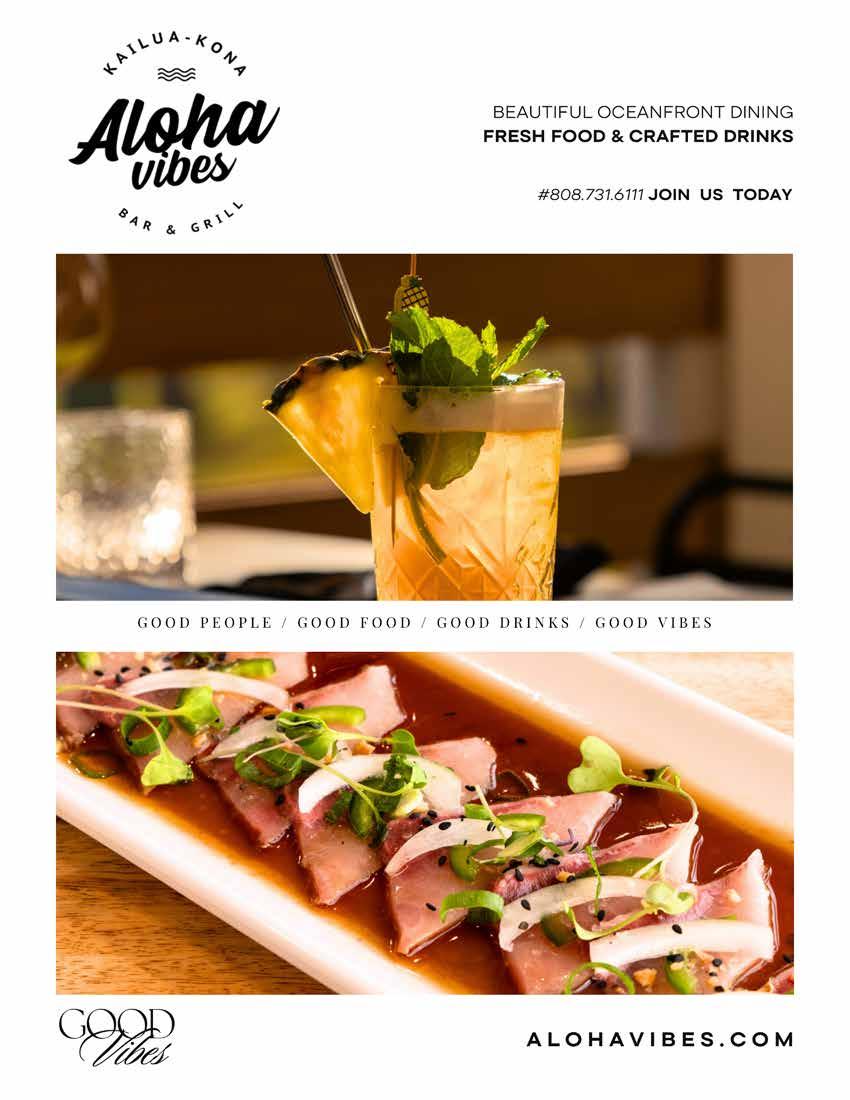 A classic 1979 custom built Lincoln Executive Coach stretch limousine CONVERTIBLE ! Accepting bookings NOW! PinkLimoKona.com 808-500-PINK (7465) Straight from Gluten-Free, Dairy Free, & Vegan Options! 808-322-0377 78-6831 Ali‘i Dr, Kailua Kona Online Ordering is available www.Bianellis.com Open Monday - Saturday Lunch: 11 am - 2 pm Dinner: 4 pm - 8 pm Happy Hour: 4 - 5 pm (with local craft beer & spirits) Serving Kona Since 1989 LEGENDARY ARTISAN PIZZA & PASTA 39 JUNE 2024 | CITYLIFESTYLE.COM/KONACOAST