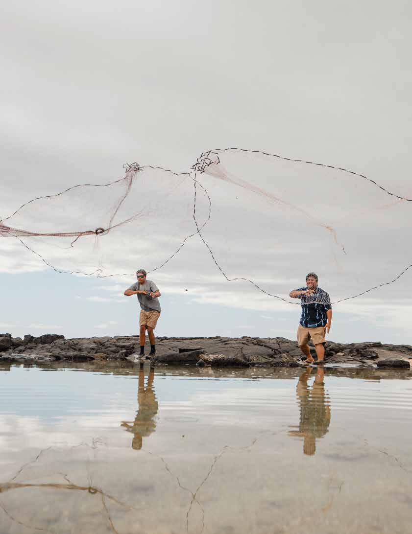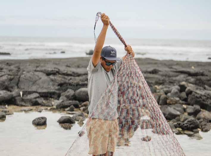 “The net is like our escape and quiet time for us,” says Apo. Born and raised in Kailua-Kona, Apo has seen the town evolve into a bustling city on the Big Island’s west side.