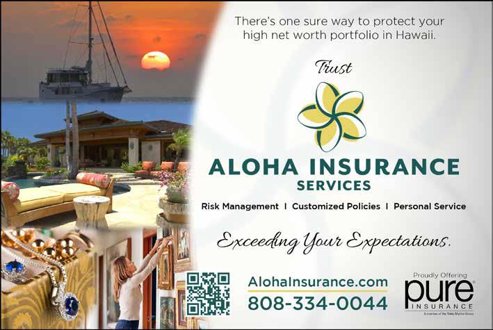 We offer same-day glasses, plus a large selection of glasses and sunglasses. Call to schedule an appointment with one of our optometrists, personal stylists and lens experts. Locally owned optical boutique serving two locations in Kona and Waikoloa 808-329-9308 75-167 Hualalai Rd Kailua Kona, Hawaii www.eyewearkona.com 808-315-7020 68-1820 Waikoloa Road, Suite 305, Waikoloa, Hawaii www.eyecarewaikoloa.com Stay Informed! Newsletter at HawaiiRealEstateDreams.com GRETCHEN OSGOOD, REALTOR® PRINCIPAL BROKER RB-18884 HAWAIIAN ISLE REAL ESTATE, LLC (RB-19005) 75-5995 KUAKINI HWY #521, KAILUA-KONA, HI 96740 HOME SALES | VACATION RENTALS | LONG TERM RENTALS 808.987.1012 27 JUNE 2024 | CITYLIFESTYLE.COM/KONACOAST