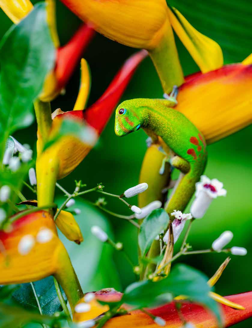 It is impossible to look at his pictures and keep walking by. His breathtaking underwater shots reveal the less-known part of our world, showcasing honu, na’ia, and other sea creatures surrounded by glass-like waves. The glowing rivers of lava contrasting the starry sky exhibit the power of nature and the unique privilege of living in this volcanic region. CJ’s wildlife collection gives us a peek behind the scenes at the secret life of geckos and pueo.