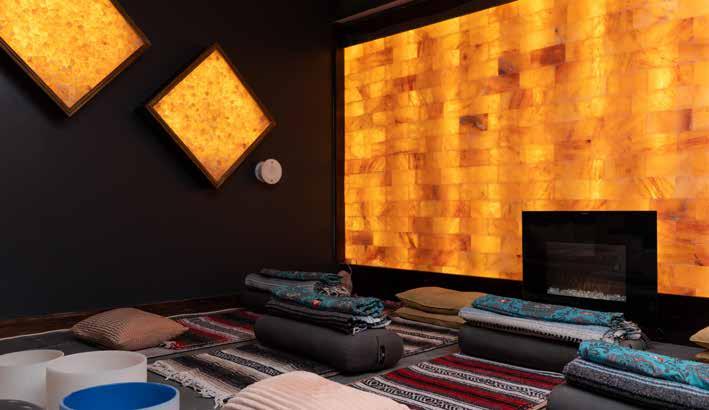 One offering that sets The Cave apart is the use of a salt cave. The practice of Halo Therapy originated from salt mines in eastern Europe, where salt miners seemed to live longer than their peers. People started traveling to salt mines to breathe in the air for better health. Greta explains, “We simulate the experience using a halo-generator which grinds up therapeutic grade sea salt into microscopic particles which are diffused into the air.” The salt cave experience supports the immune system, opens up the respiratory system by reducing inflammation, and assists in achieving a deep state of meditation. Participants experience enhanced relaxation in the space, as the salt air increases negative ions and boosts serotonin.