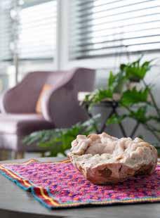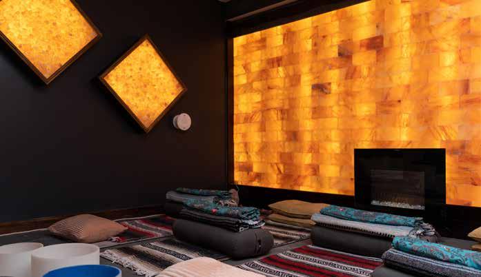 One offering that sets The Cave apart is the use of a salt cave. The practice of Halo Therapy originated from salt mines in eastern Europe, where salt miners seemed to live longer than their peers. People started traveling to salt mines to breathe in the air for better health. Greta explains, “We simulate the experience using a halo-generator which grinds up therapeutic grade sea salt into microscopic particles which are diffused into the air.” The salt cave experience supports the immune system, opens up the respiratory system by reducing inflammation, and assists in achieving a deep state of meditation. Participants experience enhanced relaxation in the space, as the salt air increases negative ions and boosts serotonin.