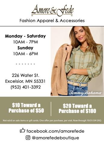 Grab your ghouls and goblins for trickor-treating in downtown Excelsior. Participating businesses will start handing out treats at 10am. You can also hunt for spooktacular clues throughout businesses in the South Lake Minnetonka area for the annual Scavenger Hunt. The clues will lead you to a haunted message which you can submit for a chance to win some fun prizes!