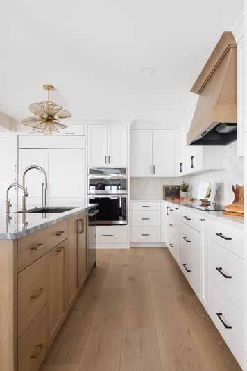 Running an efficient kitchen requires as little movement as possible. To achieve this, what’s known as the kitchen work triangle or the “golden triangle” is heavily considered when designing a kitchen. “You want as little movement as possible, so you’re not walking 10 steps this way, 15 steps that way, and then 10 steps back to try to get something done. Everything goes in a nice flow from the fridge to cutting, to cooking, to the sink,” Matt explains.