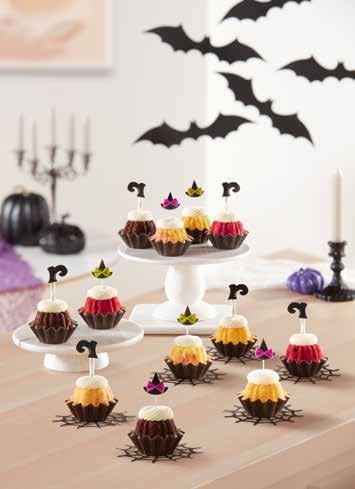 To impress your guests (and perfect for those little monsters), grab the classic “Witch Way to the Cake” or “Witches Hats and Boots.” You can order the 8’’ or 10’’ cakes with seasonal decorations, bundtlets, or bitesize bundtini cakes with fun fall toppers.