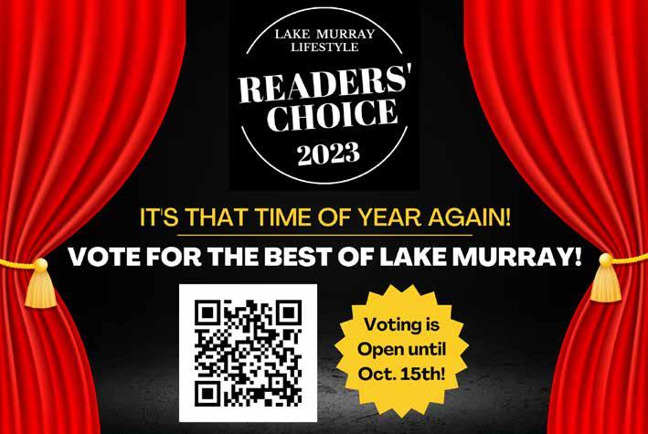 September is also the official launch of our 2nd Annual Readers Choice Awards. Once again we will have our Readers choose, and winners will be announced in our December Holiday Issue. Go to https://bit.ly/ LakeMurrayLifestyleReadersChoice2023 to register your VOTE.