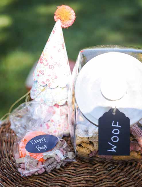 • Create a treat display with a pet-friendly birthday cake and various chewy snacks for guests to give their pups.