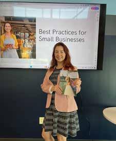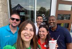 1: Alexis Jackson proudly shows the July issue of Lakeside City Lifestyle. 2: Patrons of Frost Bank enjoy a sweet treat. 3: Brad Kiesling of Farmers Insurance networks at a LE*NKS meeting. 4: The Little Elm Ladies Luncheon kicks off with networking opportunities and guest speakers. 5: Residents of Little Elm enjoy the Juneteenth celebration. 6: Point Bank in Little Elm has fun celebrating 140 years of service. 7: A City of Aubrey employee celebrates National Hot Dog Day.