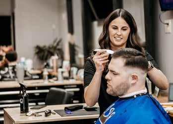 “You schedule a three o’clock appointment for a haircut, and when you walk in, you know you’re going to get a haircut, instead of going to the barbershop where you’ve got an hour wait,” says Jessica Vande Velde, co-owner of the shop with fellow stylists Shelby Browning and Kylee Belanger. “In other barbershops, you’re working to get bulk volume out the door. Here, our focus is to talk to our clients. You get to know them. Make them feel comfortable instead of just getting them out the door.”
