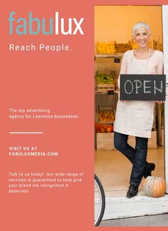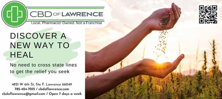 WWW.VINESALONLAWRENCE.COM GENDER NEUTRAL BODY POSITIVE SAFE SPACE (785) 838-5650 honeybeepdc.com 4621 W. 6th Street, Suite B. Lawrence, KS Come join our Hive! Discover the Difference at Honey Bee Pediatric Dental Co. We believe dance can help students BLOOM inside and outside the studio. Experience the Sunflower difference! www.sunflowerstatedance.com 2004 23rd St., Lawrence E. 785.690.7200 32