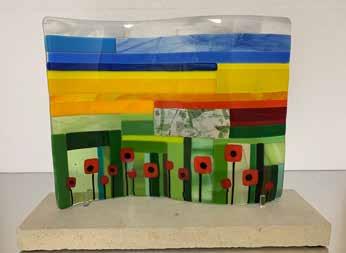 As a fused glass artist, Rademacher does not shy away from color. Her pieces are joyful and inspired by the world around her. You can learn more about her work and process at sglassart.wordpress.com .