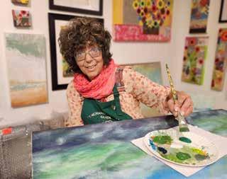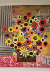 Martin loves using mediums and gels to add texture and depth to her work. Her paintings include layers of vertical and horizontal colors, including the addition of textured papers, sketches, smaller paintings, and photographs. You can learn more about Maria’s work at mariasmartin.com