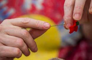 this Memorial Day is humming along in another work area. Karrie Metzger is busy placing the stems through the fabric flower and then sending them along the belt to be finished and packaged for shipping. When she’s not at Cottonwood, she is at Target, where she’s worked for 20 years.