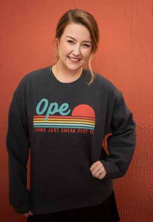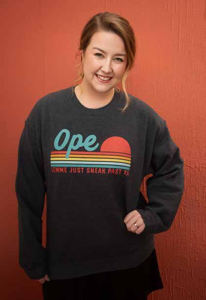 ARTICLE BY MINDY HARGESHEIMER“Ope!” “Well, hey, stranger!” “You betcha!” Whether you are Kansas or Missouri bornand-bred who naturally speaks the everyday language, or a transplant into either side of State Line Rd who adopted “She’s a character!” “DANG It!” and “Jeez Louise!” into your slang, welcome to the art of our chitchat, or as author Taylor Kay Phillips wrapped into the perfect 137 pages of coffee table comedic bliss: A Guide to Midwestern Conversation!