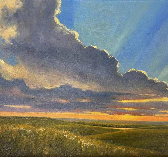 “It’s always a special thing to see how our clients emotionally connect to Kansas Prairie-inspired artwork,” says owner Megan Hoban. “People love the Flint Hills, and collecting art that captures its essence creates a window into our treasured landscape. Every artist interprets the majestic skies and landscape from a different lens. The varied perspective changes with the light, angle, weather and mood. Our clients enjoy those unique perspectives and stunning colors our artists create in their works.”
