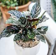 The Calathea Ornata has a ton of varieties and is a very artistic plant. This one is a little finicky and temperamental, so it can take a little bit of a green thumb to care for them. Faucet water can be hard on these plants, so they prefer distilled water. If brown tips appear, this means it is being over-watered or the water is hard. They like medium to bright indirect light. They can grow to 1 ½ feet to 2 feet maximum.