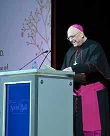 1-7 Catholic Charities Foundation of Northeast Kansas celebrated the 50th Annual Snow Ball on January 20, 2024. Over 2,000 guests attended the historic occasion which raised an incredible $5.2 million for Catholic Charities Foundation of Northeast Kansas. All proceeds will benefit Catholic Charities of Northeast Kansas’ 30+ ministries that provide help, hope and hospitality to neighbors of all faiths in need. 1: Drew and Lauren Solidum, Catholic Charities of Northeast Kansas President and CEO 2: Ken and Marilyn Hager 3: Jim and Mary Buche, Table Committee Co-Chairs 4: Mary Caffrey, Kim White, Donna Teahan and Lynn Reardon 5: Peter and Veronica Mallouk, 50th Annual Snow Ball Presidents; Kathy and Jack Newman, 50th Annual Snow Ball Honorary Presidents 6: Ken Williams and Fran and Neil Douthat 7: Archbishop Joseph F. Naumann, D.D, leads an invocation to kick off the evening’s festivities.