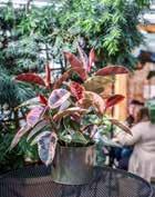 The Ficus Ruby is in the Rubber Tree family and can come in a variety of colors. These plants like either direct light or bright indirect light. These can grow three to four trunks in a pot and can take on the appearance of a bush. They grow six to eight inches a year. This plant can go dry so watering about once a month is sufficient.