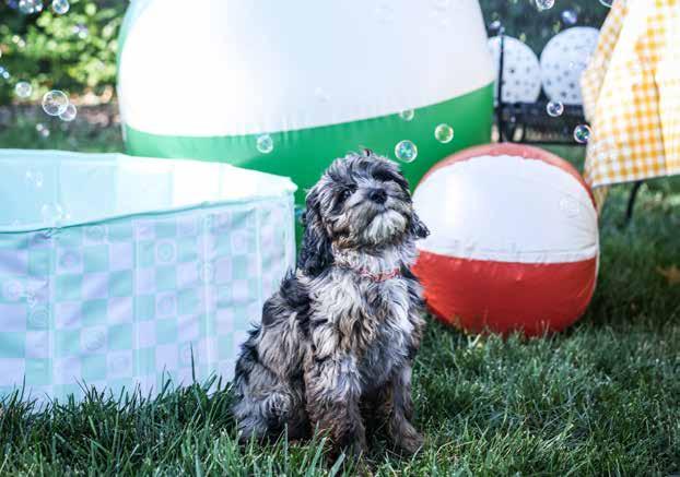 • Set up play areas for your furry guests to enjoy. This can include a doggy pool or splash pad, chew toys, frisbees, and don’t forget the pet-friendly bubbles.