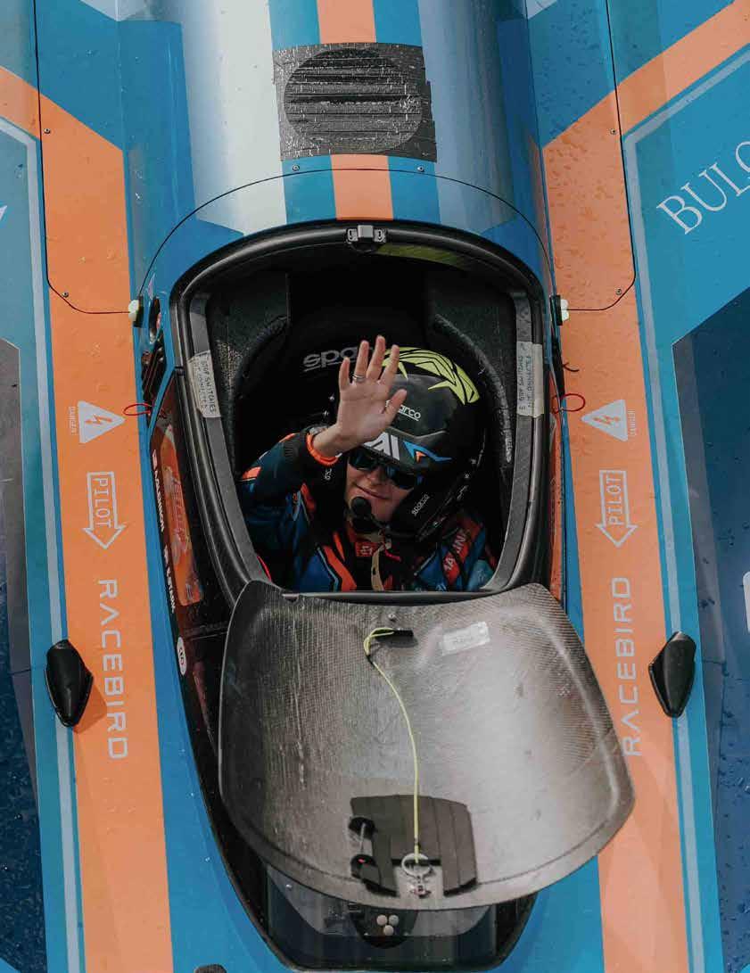 “Joining the E1 World Championship has been one of my favorite adventures of my career,” Anna says. “I was invited to participate in their Pilot Academy last year. I was trained by official UIM instructors in powerboat racing and tested the one-of-a-kind RaceBird in Lake Maggiore, Italy.”