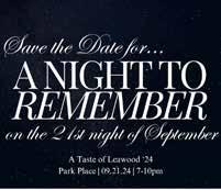 Tickets on sale now for a private evening of dining under the stars with food and drinks from over 20 area restaurants, VIP experiences, and a concert in the center of it all. Link to purchase tickets at parkplaceleawood.com/event/a-taste-of-leawood