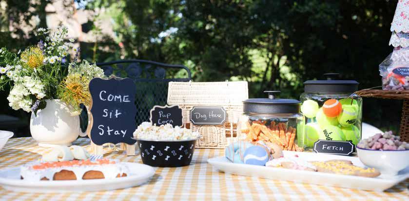 • Create a treat display with a pet-friendly birthday cake and various chewy snacks for guests to give their pups.
